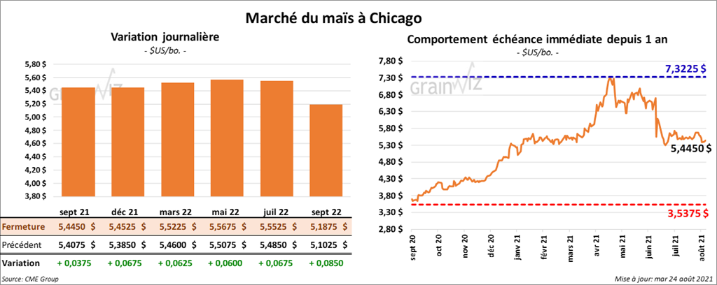 Les contrats de maïs US aux échéances les plus rapprochées ont terminé la session en hausse entre 3 ¾ et 6 ¾ cents.