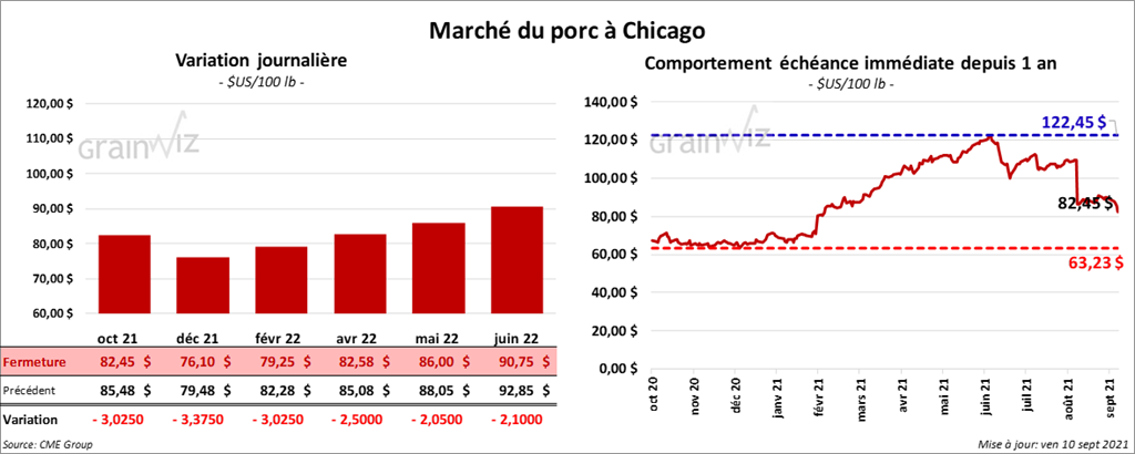 - Le 9 septembre dernier, le CME Lean Hog Index était en hausse de 33 cents à 108,46 $.