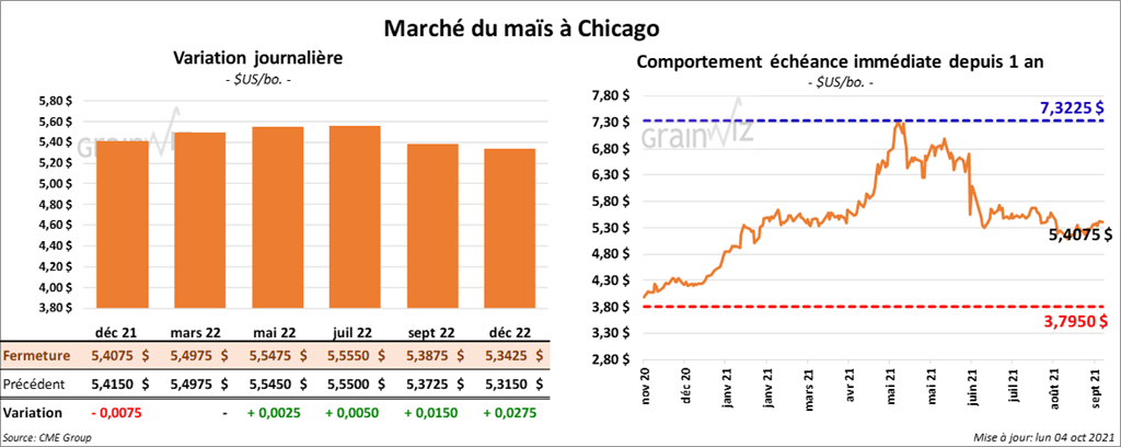 Les contrats de maïs US aux échéances les plus rapprochées ont fini la journée quelque part entre une baisse de ¾ cent et une augmentation de ½ cent.