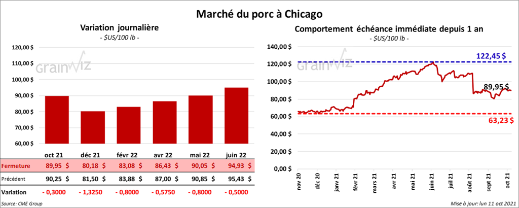 - Le 7 octobre dernier, le CME Lean Hog Index était en recul de 64 cents à 91,95 $.