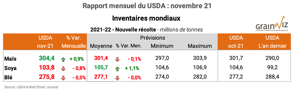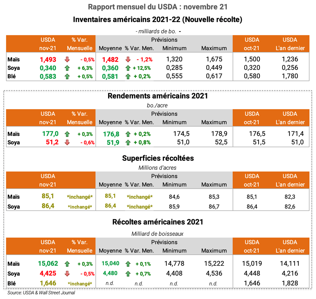 Pour obtenir le rapport complet du USDA (en anglais): WASDE Nov. 21
