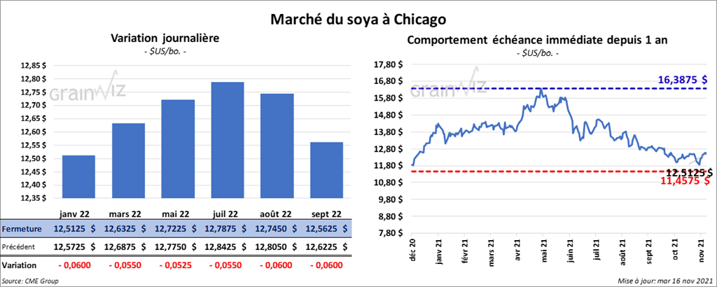 - L’USDA a rapporté des ventes privées à l’exportation de 161,000 tonnes de soya US. Les destinations sont inconnues et les livraisons sont prévues pour 2021/22.