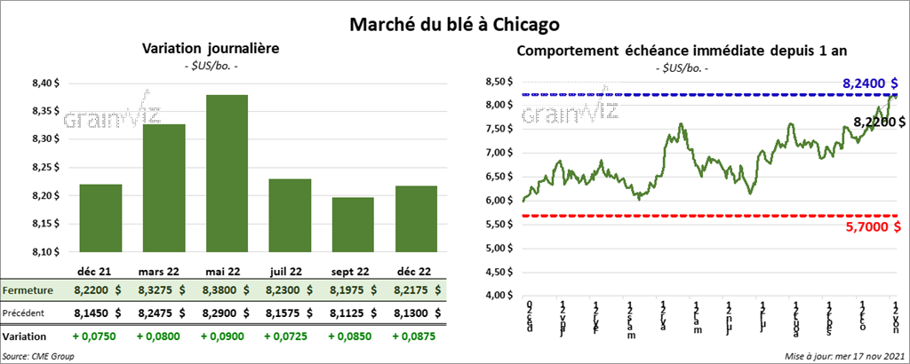 - Pour demain, les analystes s’attendent à des ventes à l’exportation de blé US entre 250,000 et 500,000 tonnes.