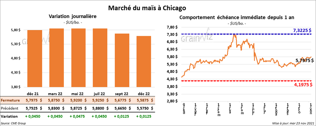 Les contrats de maïs US aux échéances les plus rapprochées ont terminé la session en hausse entre 4 ½ et 4 ¾ cents.