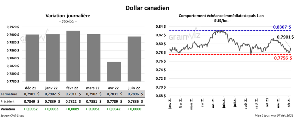 - Jeudi, le rapport d’offre et de demande de décembre sera présenté. Selon Reuters, les analystes ne s’attendent pas à de gros changements. Dans le cas du maïs US, ils anticipent une baisse des stocks de fin d’année de 6 millions de boisseaux à 1,487 milliard de boisseaux est prévue. Reuters mentionne aussi que les analystes prévoient une augmentation de la récolte de maïs brésilien de 0,2 % à 118,26 millions de tonnes.