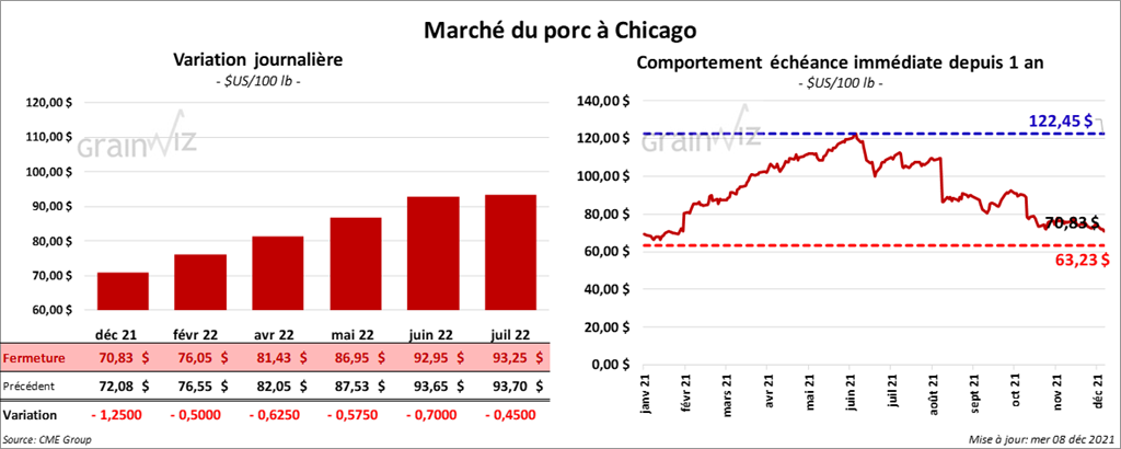 - Le 6 décembre dernier, le CME Lean Hog Index était en hausse de 16 cents à 70,94 $.