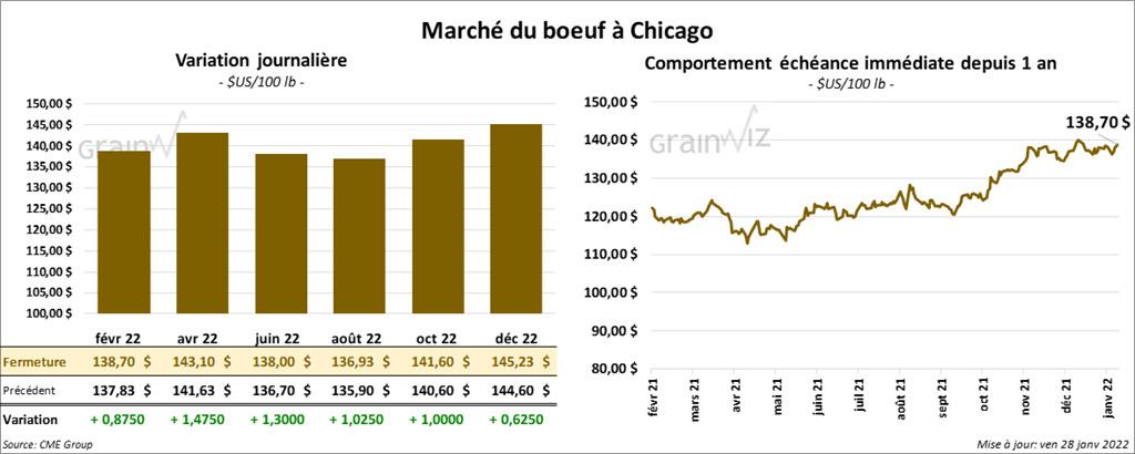 - Le 27 janvier dernier, le CME Feeder Cattle Index était en baisse de 39 cents à 158,66 $.