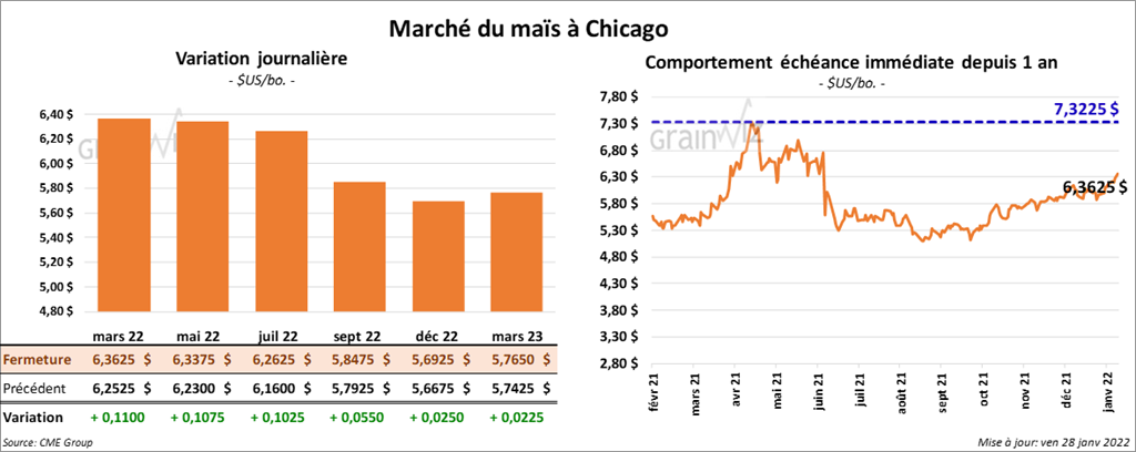 Les contrats de maïs US aux échéances les plus rapprochées ont terminé la séance en progression entre 10 ½ et 11 cents.