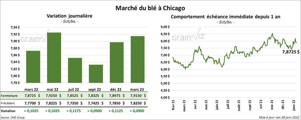 - Les tensions entre la Russie et l’Ukraine fournissent toujours un support aux prix du blé.