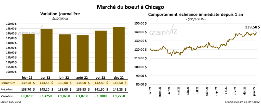 - Le 28 janvier dernier, le CME Feeder Cattle Index était en baisse de 22 cents à 158,44 $.