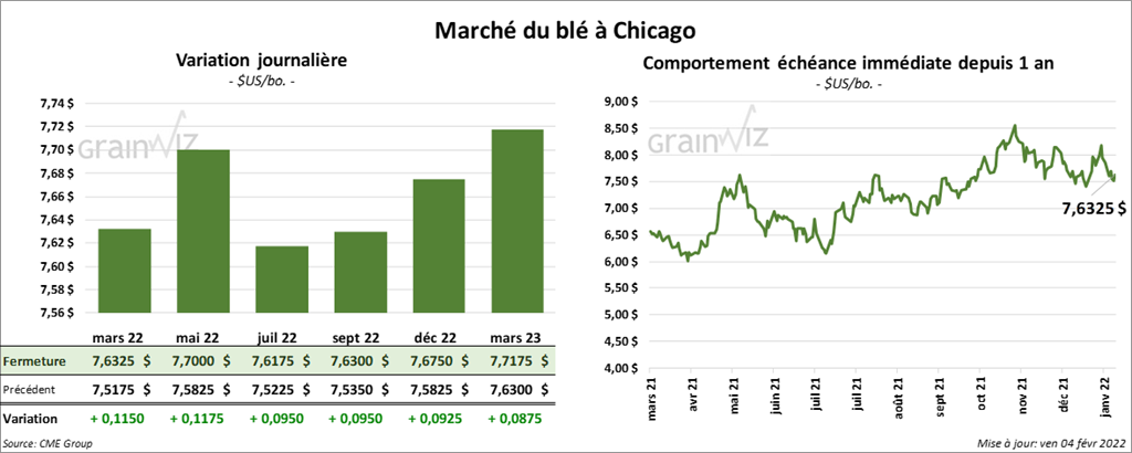 - Les tensions entre la Russie et l’Ukraine fournissent toujours un support aux prix du grain.