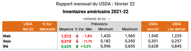 Pour accéder au rapport lors de sa publication à midi (en anglais): WASDE février 2022