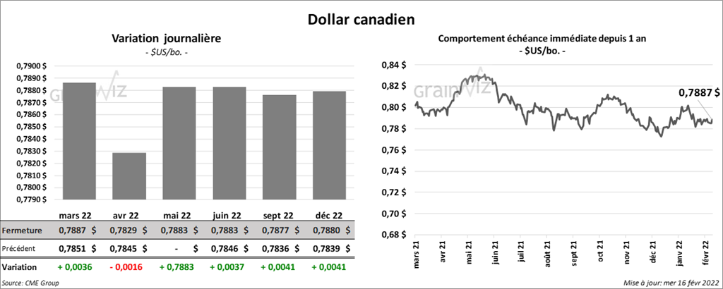- L’USDA a rapporté des ventes privées à l’exportation de 132,000 tonnes de soya US. Les livraisons sont attendues en 2022/23. La Chine est la destination.