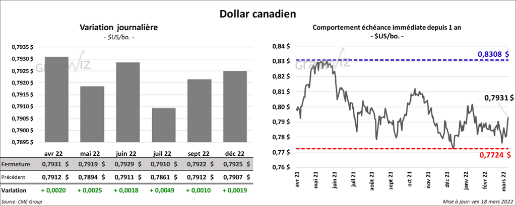 - Entre le 23 et le 29 mars prochains, la taxe à l’exportation de blé russe sera à la hausse de 10 cents à 86,40 $/tonne. Cet ajustement se base sur un prix indicatif de 323,50 $/tonne. Cette augmentation met fin à une baisse consécutive depuis les 9 dernières semaines.