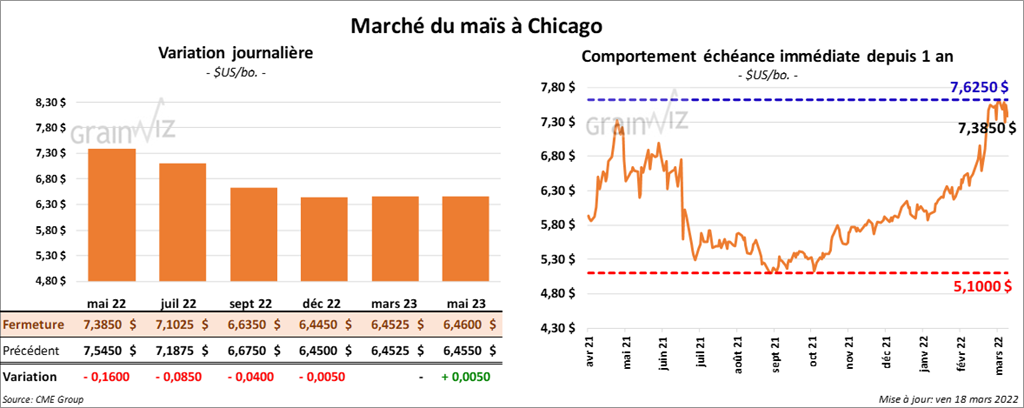 Les contrats de maïs US aux échéances les plus rapprochées ont fini la journée en baisse entre 4 et 16 cents.