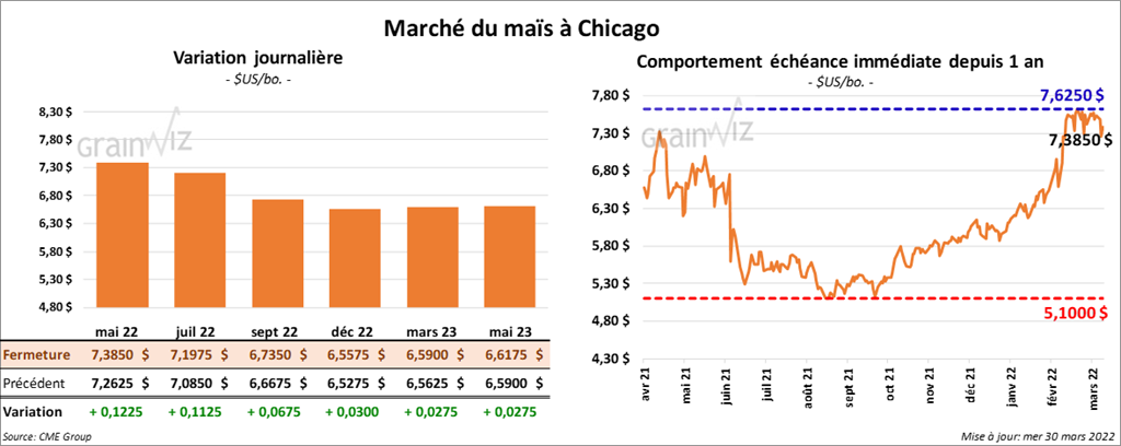 - Au même moment, le rapport sur les stocks de grains US 2021/22 sera publié. Selon Reuters, les analystes prévoient qu’au 1er mars dernier, les inventaires de maïs US ont été de 7,877 milliards de boisseaux.