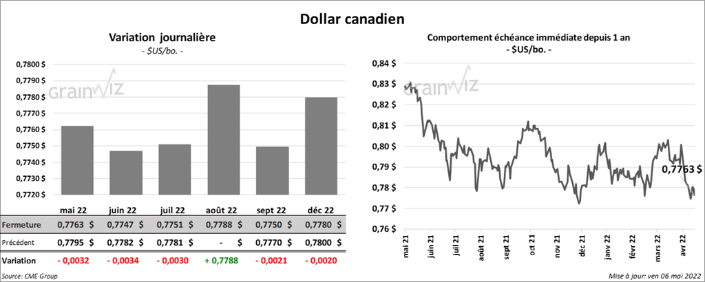 - Statistique Canada a présenté son rapport sur les inventaires de grandes cultures canadiennes ce matin. Dans le cas du canola, l’agence gouvernementale canadienne estime que vers la fin mars dernier, les stocks ont été de 3,9 millions de tonnes, ce qui correspondait à une réduction annuelle de 49,3 %. L’organisme mentionne aussi que l’offre était limitée, ce qui a contribué à une baisse des exportations de 48,4 %. Les analystes s’attendaient à des inventaires plus élevés à 4,581 millions de tonnes.