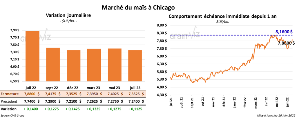 Les contrats de maïs US aux échéances les plus rapprochées ont clôturé la journée avec des gains entre 12 ¾ et 14 ¼ cents.