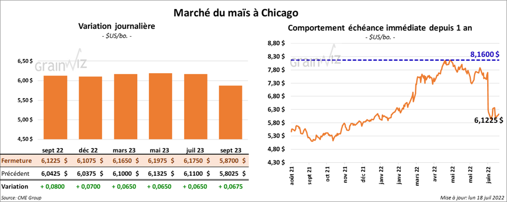 Les contrats de maïs US aux échéances les plus rapprochées ont terminé la session en hausse entre 6 ½ et 8 cents.