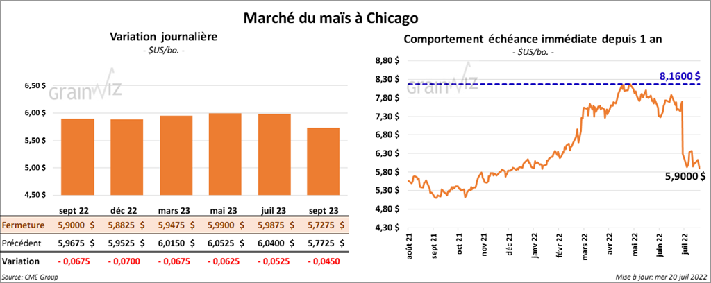 Les contrats de maïs US aux échéances les plus rapprochées ont terminé la journée en recul entre 6 ¾ et 7 cents.