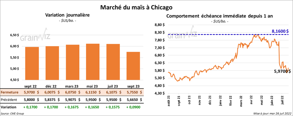 Les contrats de maïs US aux échéances les plus rapprochées ont terminé la session en progression entre 16 ¾ et 17 cents.