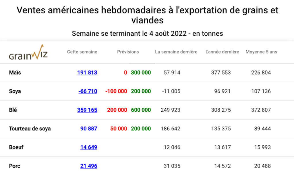 Le rapport sur les ventes à l’exportation de la semaine du 4 août dernier montre que celles de maïs US 2021/22 ont été de 191,813 tonnes. Les attentes des analystes étaient entre 0 et 300,000 tonnes.