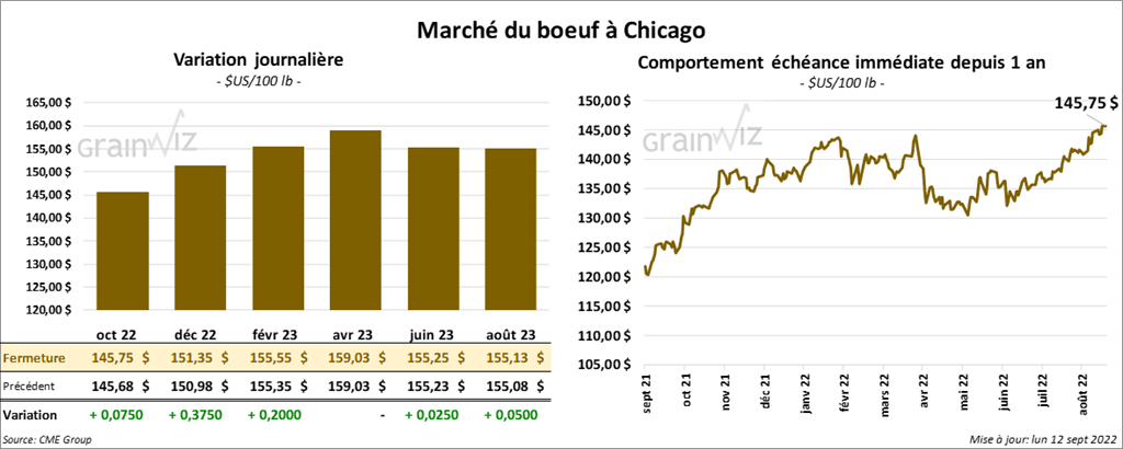 - Le 9 septembre dernier, le CME Feeder Cattle Index était en recul de 33 cents à 180,91 $.
