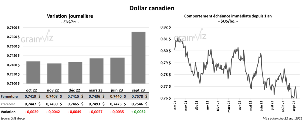 - Le 21 septembre dernier, le CME Feeder Cattle Index était en hausse de 1,65 $ à 179,75 $.