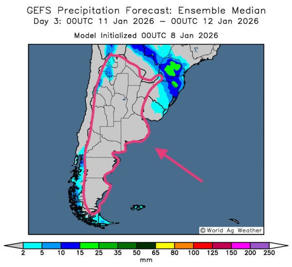 - World Weather prévoit, pour la semaine prochaine, des possibilités d'averses bénéfiques pour la plupart des régions asséchées de l'Argentine. Ces précipitations devraient, pour un certain temps du moins, limiter le potentiel de stress hydrique chez différentes cultures qui se trouvent surtout dans les régions de l'ouest du pays.