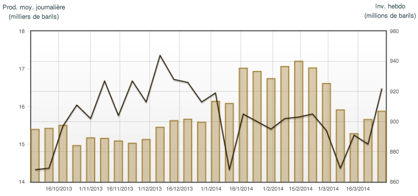 L’EIA (Energy Information Administration) a publié aujourd’hui son rapport hebdomadaire sur la production et les stocks d’éthanol aux États-Unis. Selon ce rapport, il se serait produit 922 000 barils/jour la semaine dernière, une hausse de 37 000 barils/jour comparativement à la semaine précédente. Il s’agit du niveau le plus élevé de production atteint depuis le mois de décembre dernier.Par contre, les inventaires d’éthanol aux États-Unis ont également grimpé à 15,875 millions de barils, une hausse de 1,4% par rapport à la semaine précédente, mais un recul de 9,2% comparativement au niveau observé à pareille date l’an dernier.