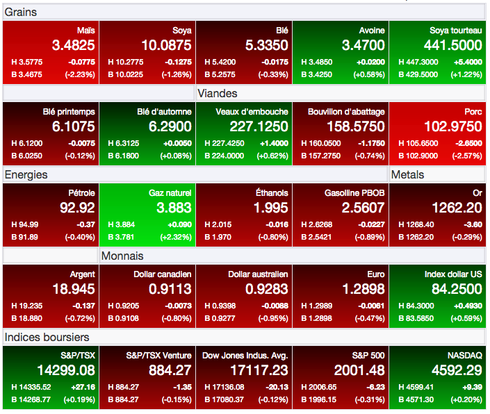 Pour l’heure, le sentiment des marchés demeure donc négatif avec d’autres creux à prévoir si aucune nouvelle stimulante ne voit le jour rapidement. Les récoltes américaines continuent de leur côté à progresser tranquillement vers le nord, ajoutant une touche de négativité supplémentaire dans le marché.