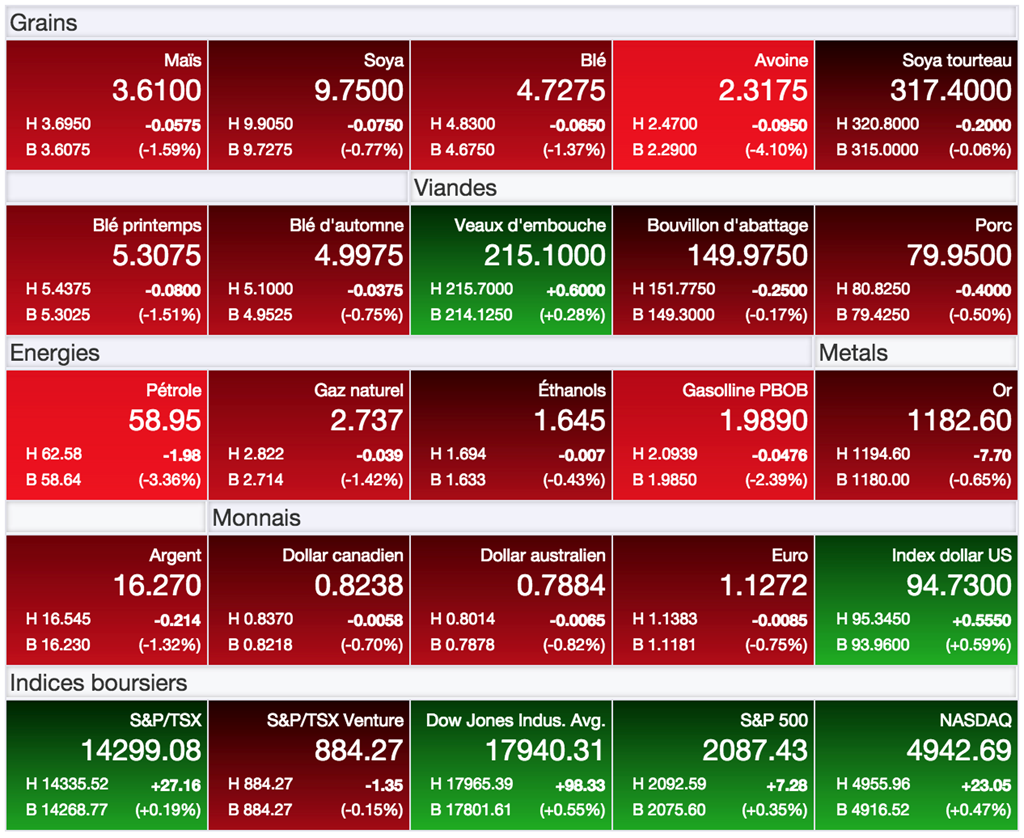 Après un début de semaine sur une note pour le moins positive et encourageante, le marché des grains aura été quitte pour un revers aujourd’hui. Hier et plus tôt ce matin, certains analystes commençaient même à entrevoir la fin de la chute des prix pour le printemps, spécialement celui du maïs. Il semble que ce sentiment aura été prématuré.