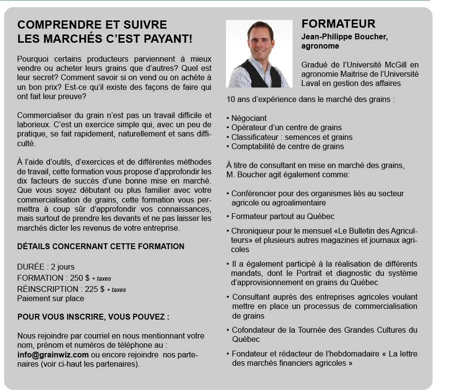 Formation supplémentaire proposée avec notre partenaire Agrocentre Fertibec les 24-25 mars à St-Rémi de 9h30 à 15h30. Responsable: Jacques Lévesque: 514-709-9140
