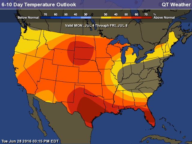 Beaucoup d’encre continue de couler concernant les prévisions météo pour le Midwest qui évoluent de jour en jour. D’ici la semaine prochaine, du temps plus frais qu’à la normale reste sur le radar, avec des précipitations un peu moins importantes. Ceci laisse les cultures à risque face à une éventuelle nouvelle vague de chaleur qui, semble-t-il, commence à faire surface pour la semaine prochaine.