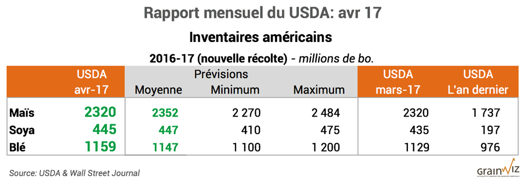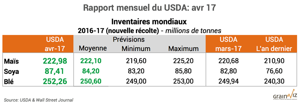 Pour accéder au rapport complet du USDA (en anglais): WASDE Avril 17
