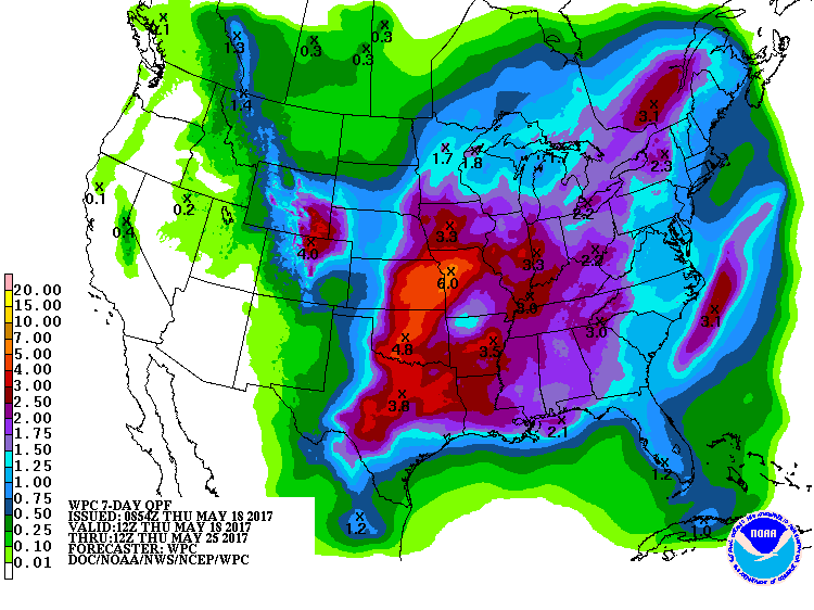 Par contre, les marchés restent encore nerveux concernant la météo des prochaines semaines. S’il est vrai que les ensemencements devraient finalement être complétés dans les temps, les températures plus fraiches et de bonnes précipitations devraient encore être au rendez-vous dans les 7 prochains jours. Des dommages/pertes sont encore possibles et l’émergence des cultures pourrait être compromise.