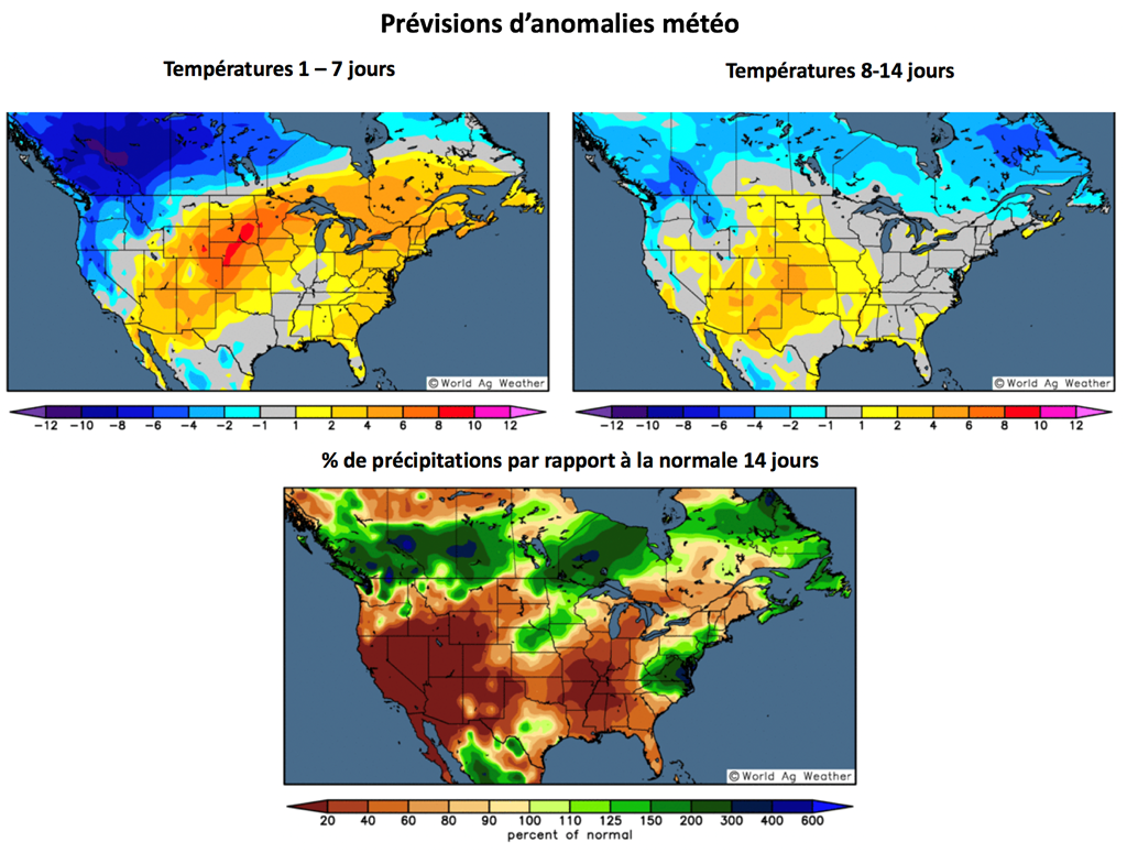 Quant au rapport de demain d’offre et demande (WASDE), le marché anticipe que les inventaires mondiaux de fin d’année seront à la hausse de 1,35 million de tonnes à 107,29 millions de tonnes.