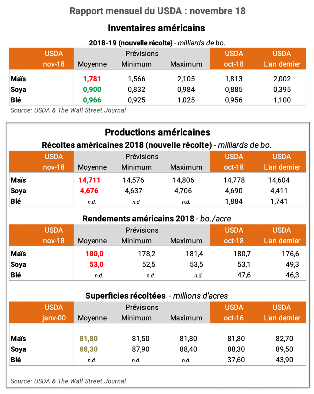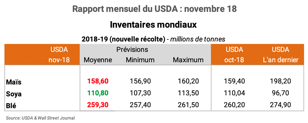 Pour accéder au rapport mensuel du USDA lors de sa publication (en anglais): WASDE Nov. 18