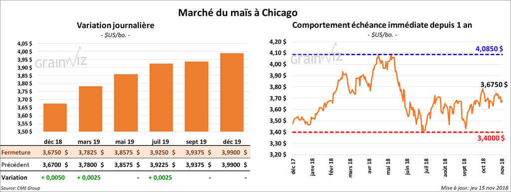 À la fermeture, la majorités des contrats de maïs à Chicago étaient d’une fraction à la hausse.