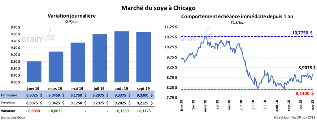 Ce matin, le USDA a rapporté des ventes privées à l’exportation de 268 748 tonnes de soya US 2018/2019. Les destinations étaient inconnues.