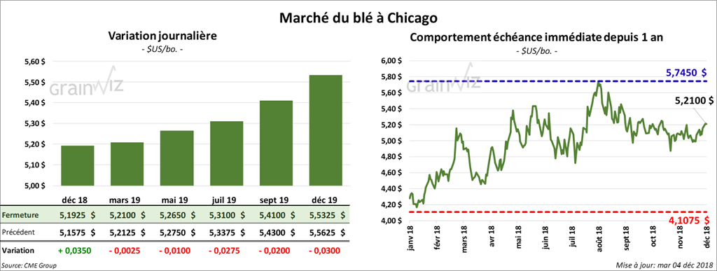 Les contrats de blé US ont clôturé au neutre à baissier de 4 cents. À Chicago, les contrats aux échéances les plus rapprochées ont été un peu plus fermes.