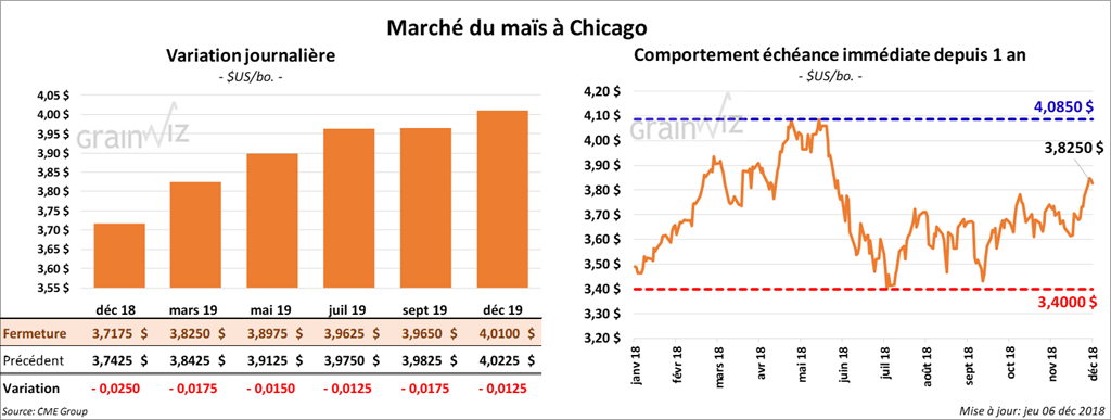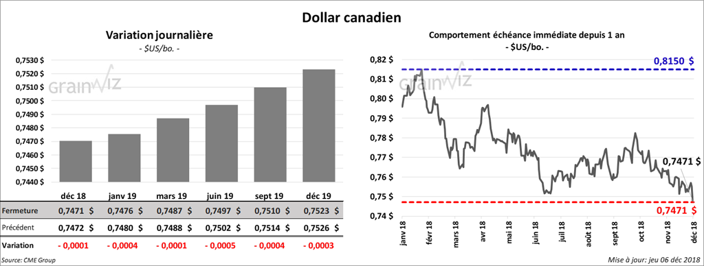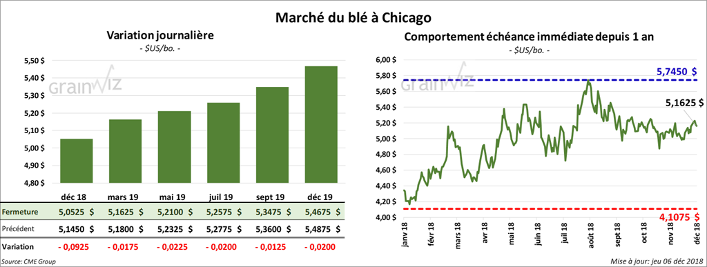 La majorité des contrats de blé US ont terminé la journée avec des pertes de 2 à 6 ¼ cents. Il y a eu peu de volume pour le contrat de décembre 18 qui devrait expirer vendredi prochain. À Minneapolis, les contrats ont eu une session passablement faible.