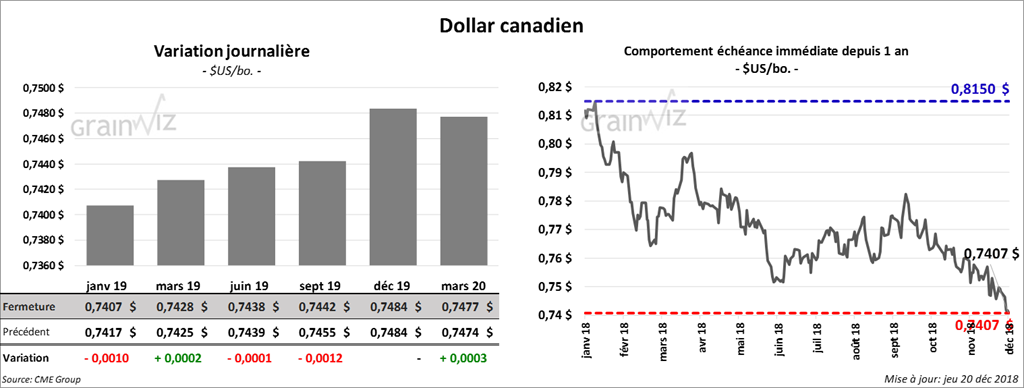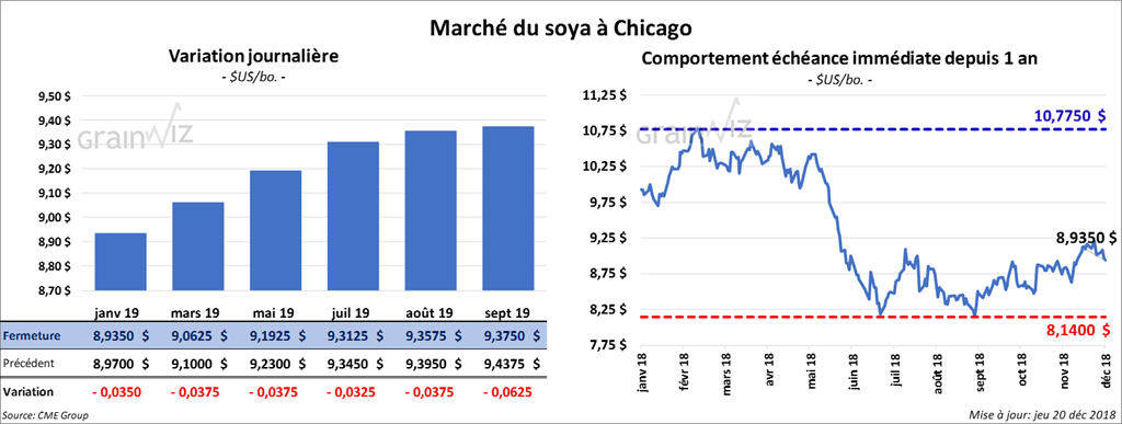 Les contrats de maïs ont terminé la journée en baisse de 5 à 6 cents. Le rapport sur les ventes à l’exportation jugé décent et les prises de profits en prévision du congé des fêtes ont influencé le marché.