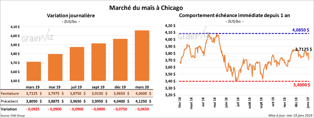 La majorité des contrats de maïs à Chicago ont clôturé en baisse de 5 à 7 ¼ cents. La faiblesse des prix de l’éthanol et le manque de nouvelles exportations ont pesé sur le marché.