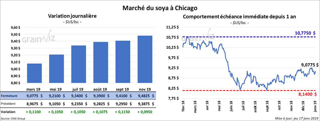 La plupart des contrats de soya à Chicago ont monté en force après avoir franchi le cap de midi pour clôturé avec des gains de 11 à 13 ¼ cents.