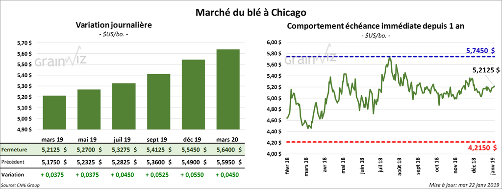 Ce mardi, la plupart des contrats de blé d’hiver US ont clôturé en hausse de 2 à 4 ½ cents. À Minneapolis, toutefois, les contrats de blé ont reculé de 1 à 2 ½ cents.