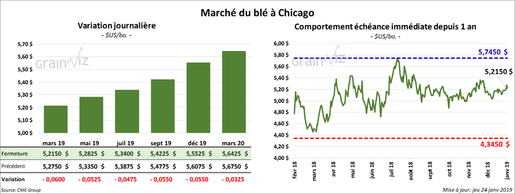 La majorité des contrats de blé d’hiver US ont terminé la journée en baisse de 3 à 4 ½ cents. À Minneapolis, la progression des contrats a été partagée.
