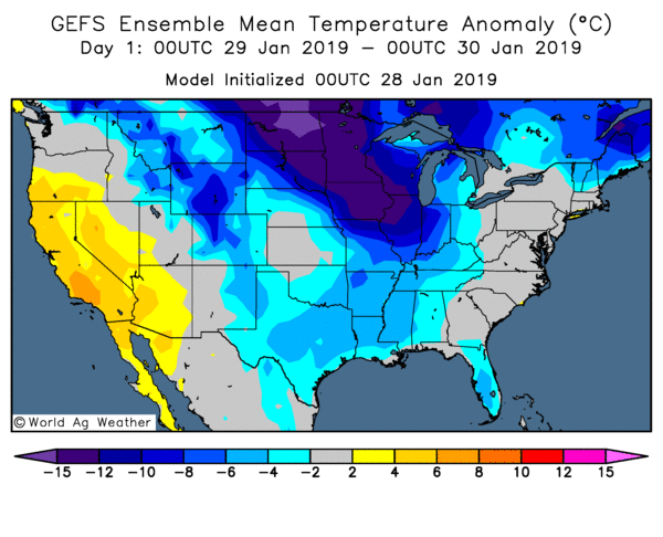 Concernant le blé d’hiver US, les températures inférieures à zéro, qui sont prévues cette semaine, engendrent certaines inquiétudes pour les zones non-protégées par un couvert de neige adéquat. Il sera toutefois difficile de connaître l’étendue des dégâts avant que les semis ne sortent de leur dormance.