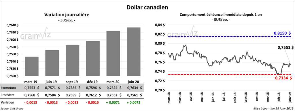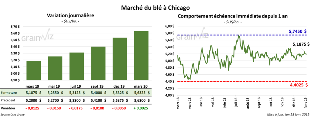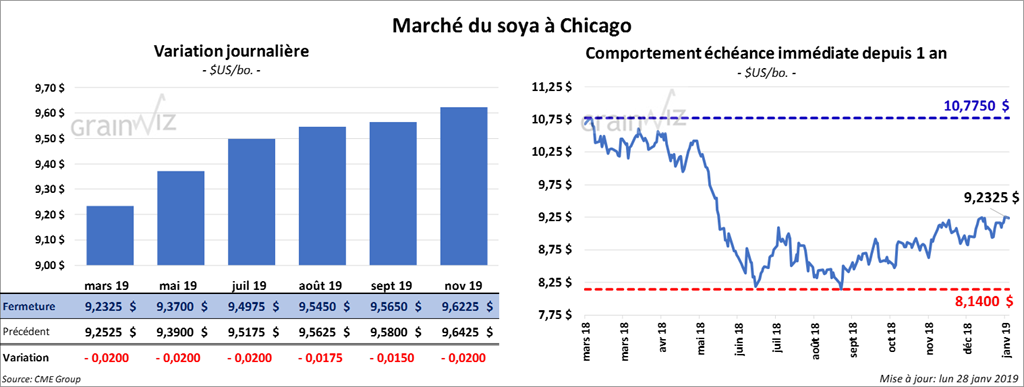 Le Congrès et l’Administration américaine ont voté un projet de loi sur un financement à court terme pour rouvrir la totalité du gouvernement américain au moins jusqu’au 15 février prochain. Les données du USDA devraient donc commencer à être publiées, mais de nombreux de retards sont à combler. En fait, beaucoup de rapports, dont celui d’offre et de demande (WASDE), seront présentés le 8 février prochain.