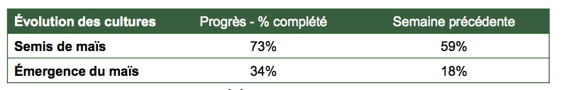 - Résultats – Évolution des cultures de maïs et de soya aux États-Unis
